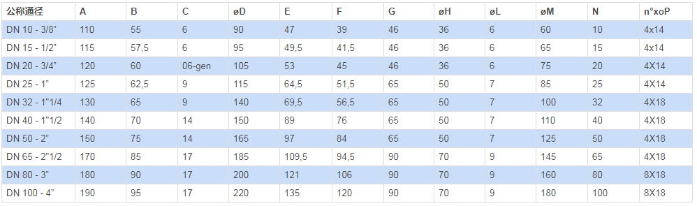 法蘭連接要求:EN 1092-1;法蘭間距要求:DIN 3202-F4;法蘭螺紋:UNI PN 16。