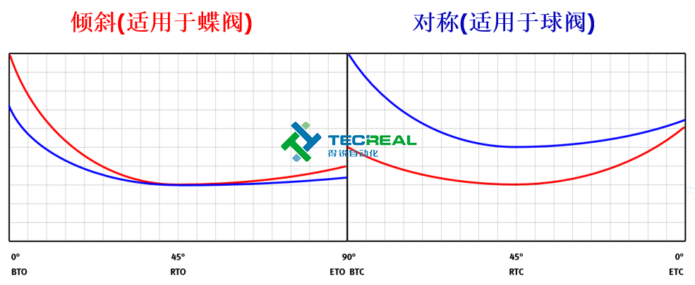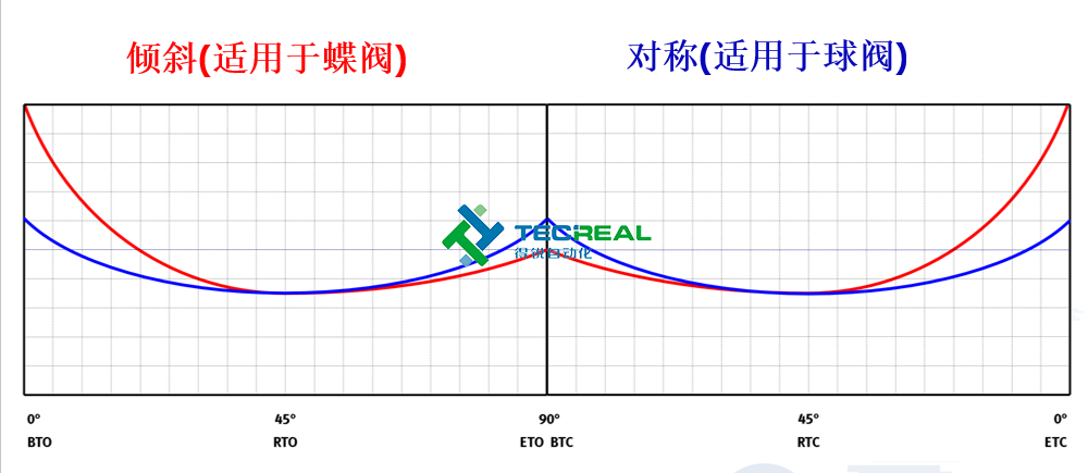 單動執(zhí)行器兩種類型的扭矩曲線對比