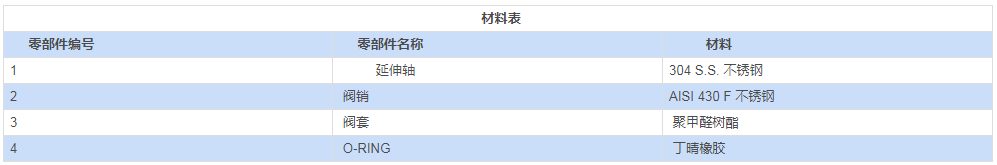 手柄、螺帽及閥桿彈簧采用不銹鋼