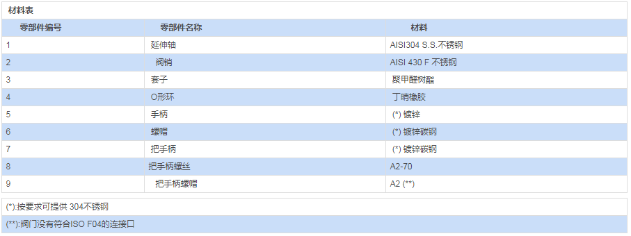 | (**):閥門沒有符合ISO F04的連接口 |
