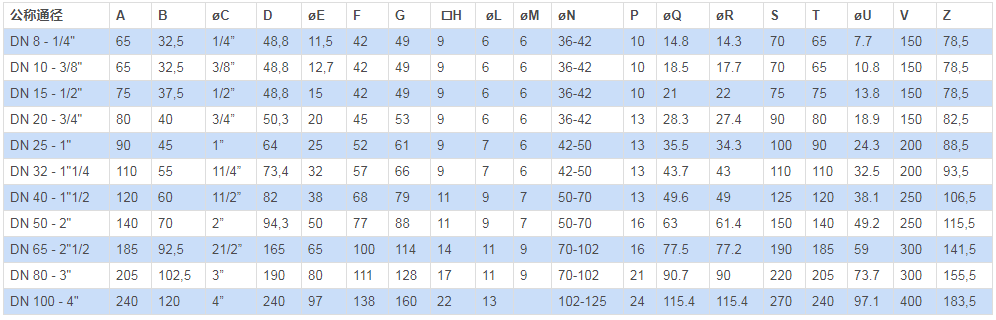 兩端:暗螺紋符合UNI/ISO 7/1 Rp;平焊和對(duì)焊。
