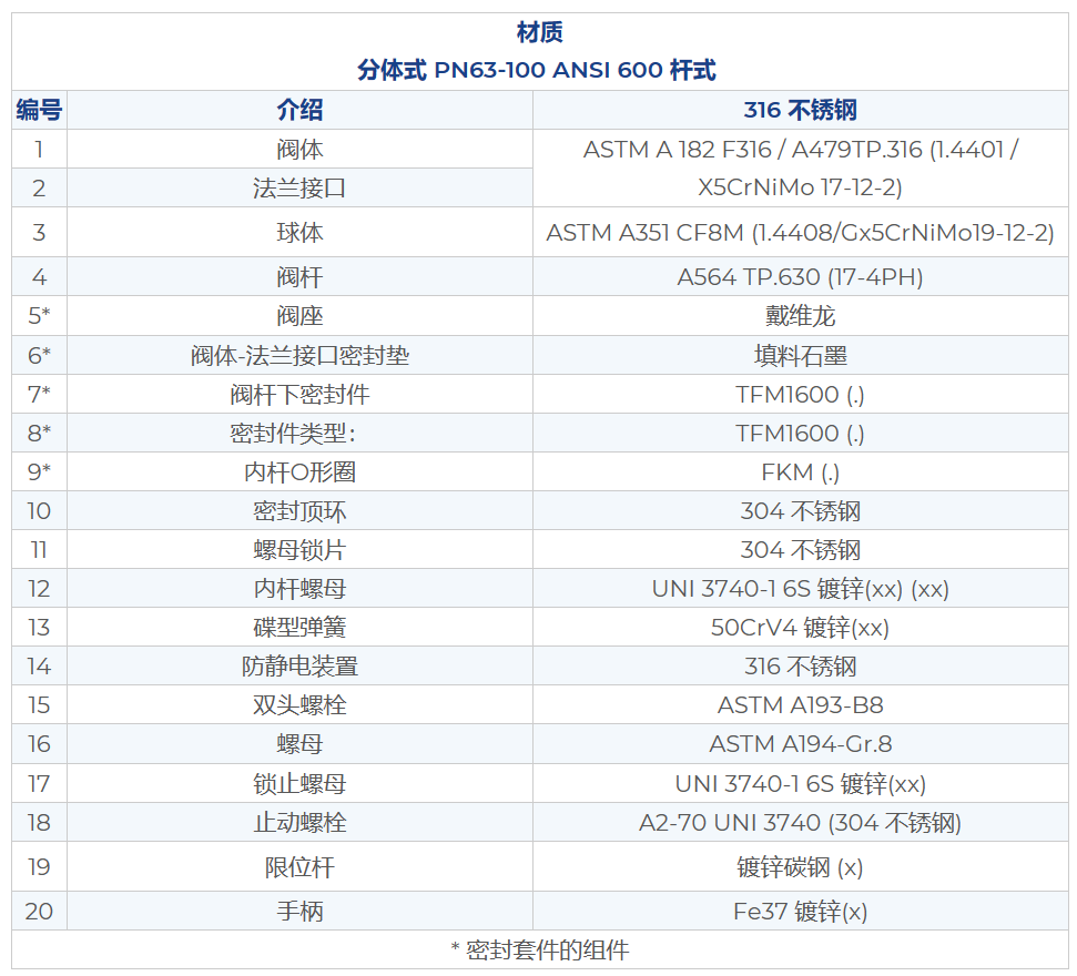 ? 有關標準之外的特殊材質配置(閥體/球體/閥桿),請聯絡我司的銷售部門