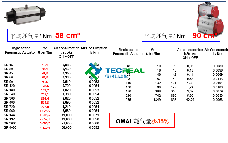 OMAL執(zhí)行器與Bray執(zhí)行器在耗氣量和重量上的對(duì)比