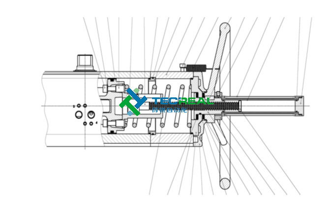 OMAL集成手輪型氣動(dòng)執(zhí)行器巧妙的將緊急操作手輪機(jī)構(gòu)集成于執(zhí)行器上,節(jié)省安裝空間,通過螺桿的移動(dòng)直接作用于執(zhí)行器活塞,實(shí)現(xiàn)緊急狀況下手動(dòng)控制效果。