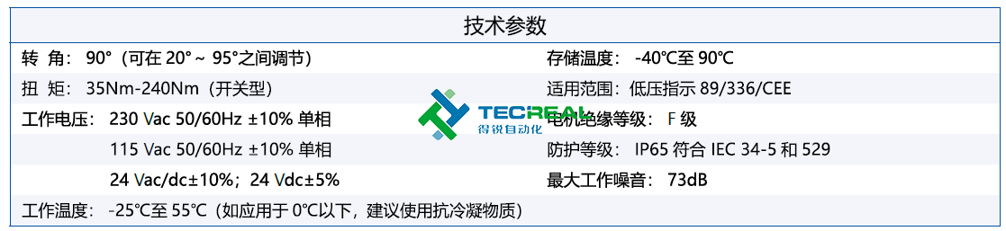 具有外部可調機械限位,可提供開/關兩位置的微調可實現(xiàn)外部可視位置指示、緊急手動操作、電機過熱保護、過力矩保護。