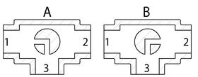 活塞球?yàn)椤癟”型,流體介質(zhì)僅可從3號(hào)門進(jìn)入。