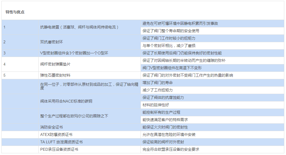 閥桿密封:V型系列,采用TFM1600聚四氟乙烯材料