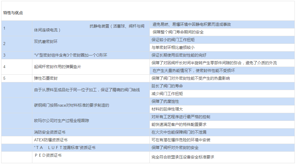 閥桿密封:V型系列,采用TFM1600聚四氟乙烯材料