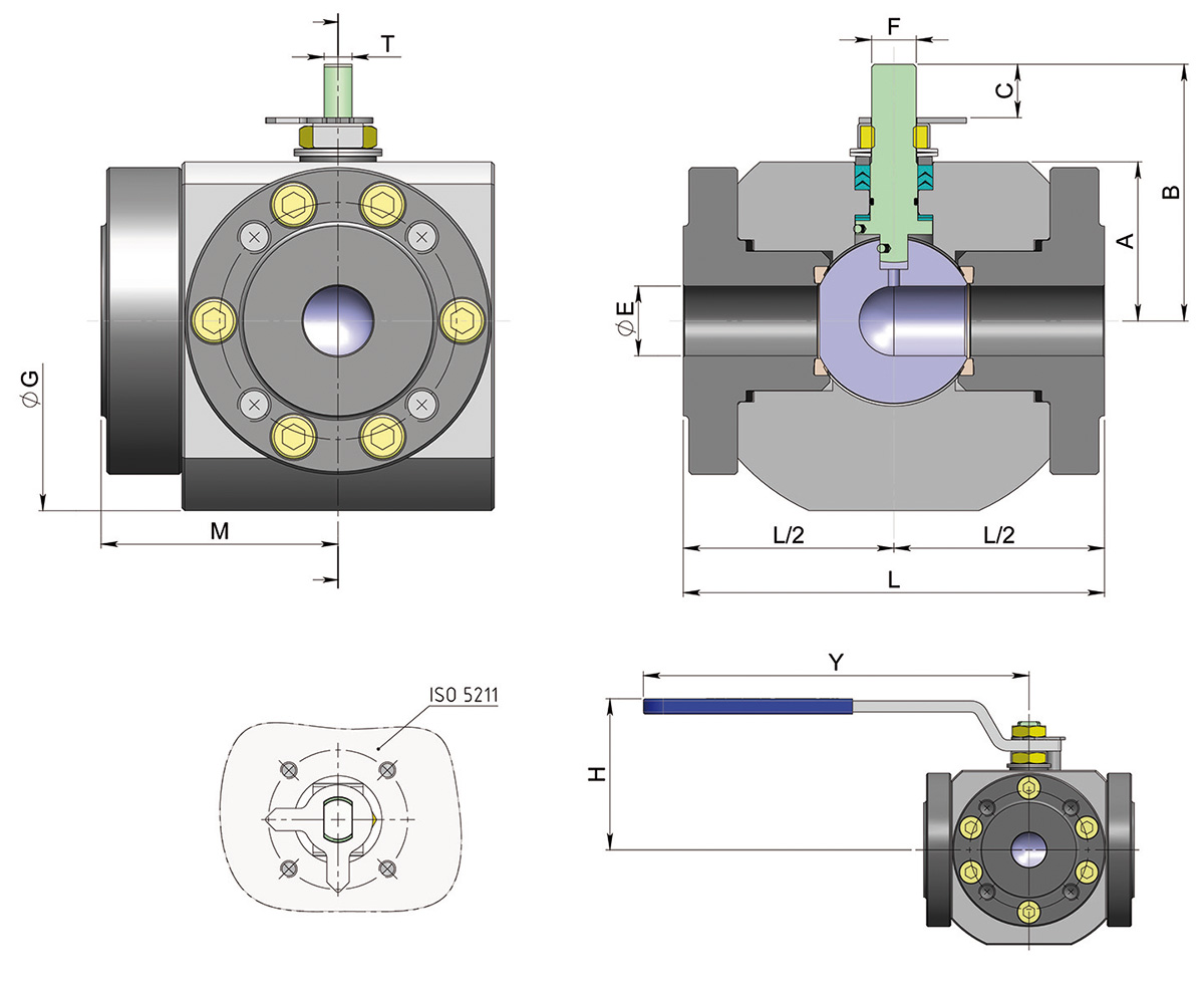 | 公稱(chēng)通徑? | PN/ANSI | ?E | L | M | A | B | C | ATT.ISO | F/T | ?G | H | Y | Kg. |