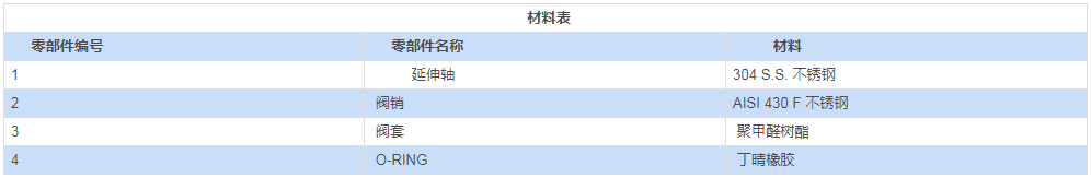 手柄、螺帽及閥桿彈簧采用不銹鋼