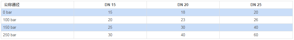 扭矩的數據隨工作介質的溫度而變。安全系數設定為1.4。與開始使用時的數據相比,長期頻繁使用后扭矩數據會有明顯的減小。