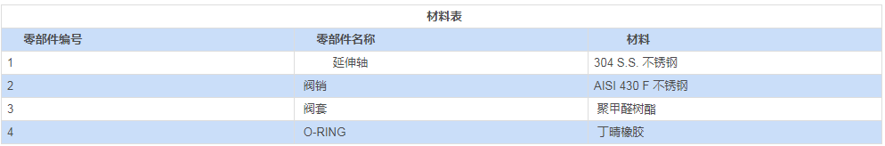 手柄、螺帽及閥桿彈簧采用不銹鋼