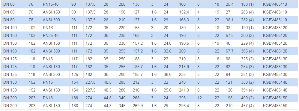 (1)?EN558 TAB. 2 COL. 14 / DIN 3202-1 F4?(2)?EN558 TAB. 2 COL. 15 / DIN 3202-1 F5?(3)?ANSI B16.10?(4)?B16.10 / API6D<